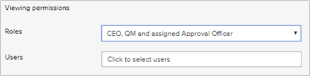 The 'Access permissions' feature is now called 'Viewing permissions' and a new field has been added called 'Users'. This means that you can assign viewing rights to specific users regardless of their permission level. |