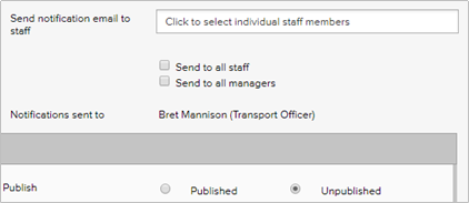 Notification emails sent when unpublishing a document or sent from an unpublished document will state that the document has been unpublished. |