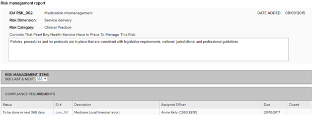 The Risk Management Report now displays detailed information about the risk and the controls in place to manage the risk. |