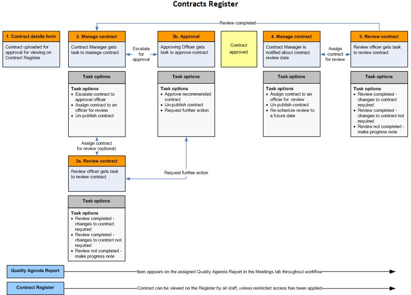 The flow diagram below shows the Contracts Register workflow in LOGIQC QMS