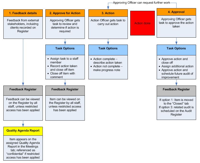 Feedback Register workflow Follow The flow diagram below shows the Feedback Register workflow in LOGIQC QMS