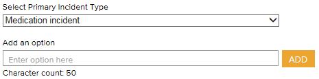 5. Use the 'Select Primary Incident Type' menu option (below) to select the area to which you want to add sub-categories.