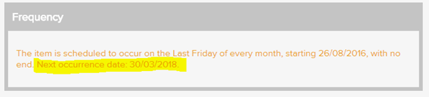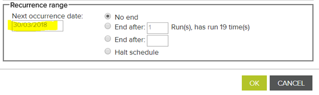 The scheduler now displays the date of the next scheduled task. This date is displayed in the two places indicated above. |