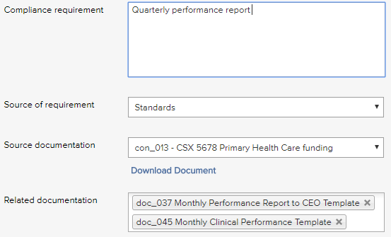 You can now link up to five documents when scheduling a task in the Compliance Register. And links to download each of these documents are displayed on the task action form when the task needs to be done. |