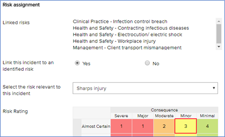 If the Risk Management Module is activated in your LOGIQC QMS, there are now more clearer options for linking incidents, feedback, improvements and repairs to the identified risks. In the example above, LOGIQC QMS will display the range of risks already linked to a particular incident type and also provide simpler options for linking the item to a risk. |