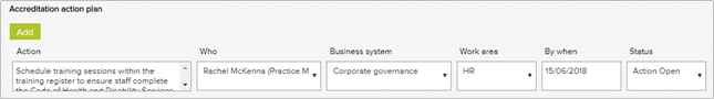 The Accreditation Action Plan section of the Accreditation Details Form allows a user to identify actions that could be completed to further comply with the requirements of the Standard. Where applicable, the accreditation action tasks are added to the respective Assessment Details Form.