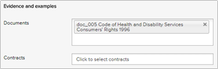 - Then select the document in the “Document” field under the Evidence and examples section.