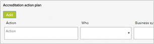 If your organisation needs to take further action in order to meet the requirements of the Standard, details of the action can be added here, which will be collated into a single Accreditation Action Plan, with all actions across all of the Standards. Note: The “Accreditation Action Plan” which will provide details of action to be taken to meet the Standards, appears on a separate tab in the Accreditation Module. |