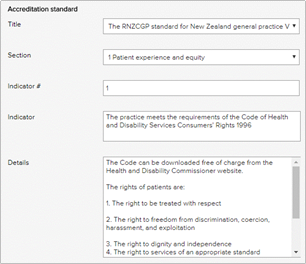 The details of the Standard will be pre-populated in the Accreditation Details Form. Note: The titles of these fields will vary to suit the specific Standard you are managing. |