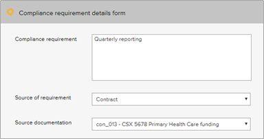 Create a related compliance task from a contract and the related contract is automatically selected. |